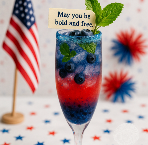 Inspired by New Englands Currants, Grapes, and Sage. It begins with local partner Midnight Tease: Full Moon, a Grape Leaf and Currant White Tea. We deepen it with Black Currant Juice, Cordyceps, and Housemade Sage Syrup (Sage, Sugar, Lemons) for a velvety sip for clarity, stamina, and listening to the land after dark.
